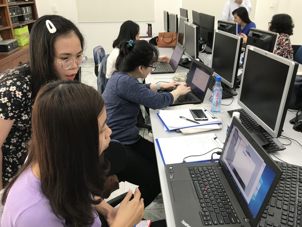 Teachers at saigonchildren’s Thang Long school learning about how to organise online classrooms