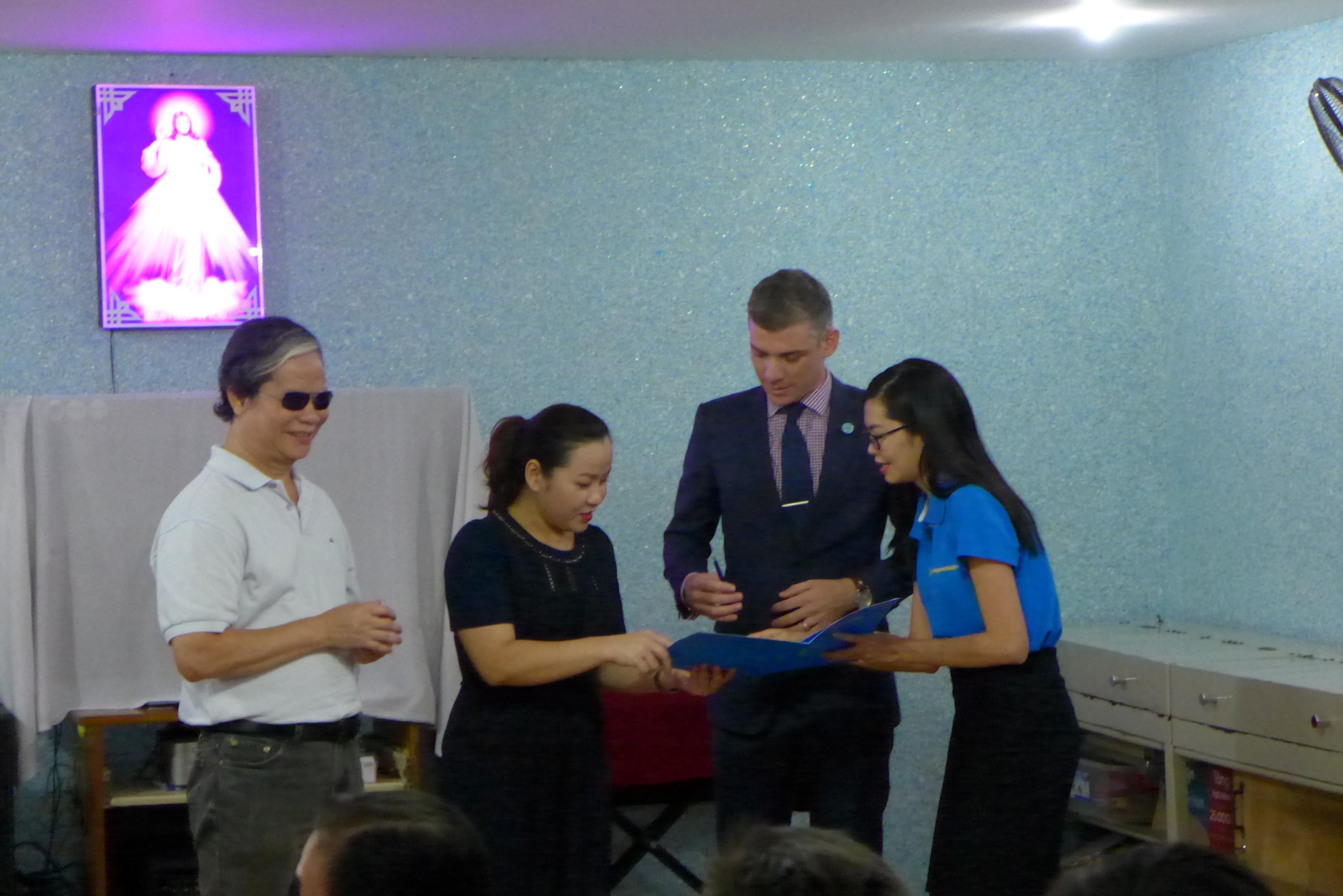 Sau khi ký kết thỏa thuận tài trợ, đại diện tham gia các bên đã dành ra thời gian giao lưu với các em ở mái ấm. Buổi giao lưu diễn ra với nhiều cung bậc cảm xúc và giúp những người tham gia tìm hiểu rõ thêm về cuộc sống của người khiếm thị và mọi người đều cảm thấy biết trân trọng thêm về cuộc sống.